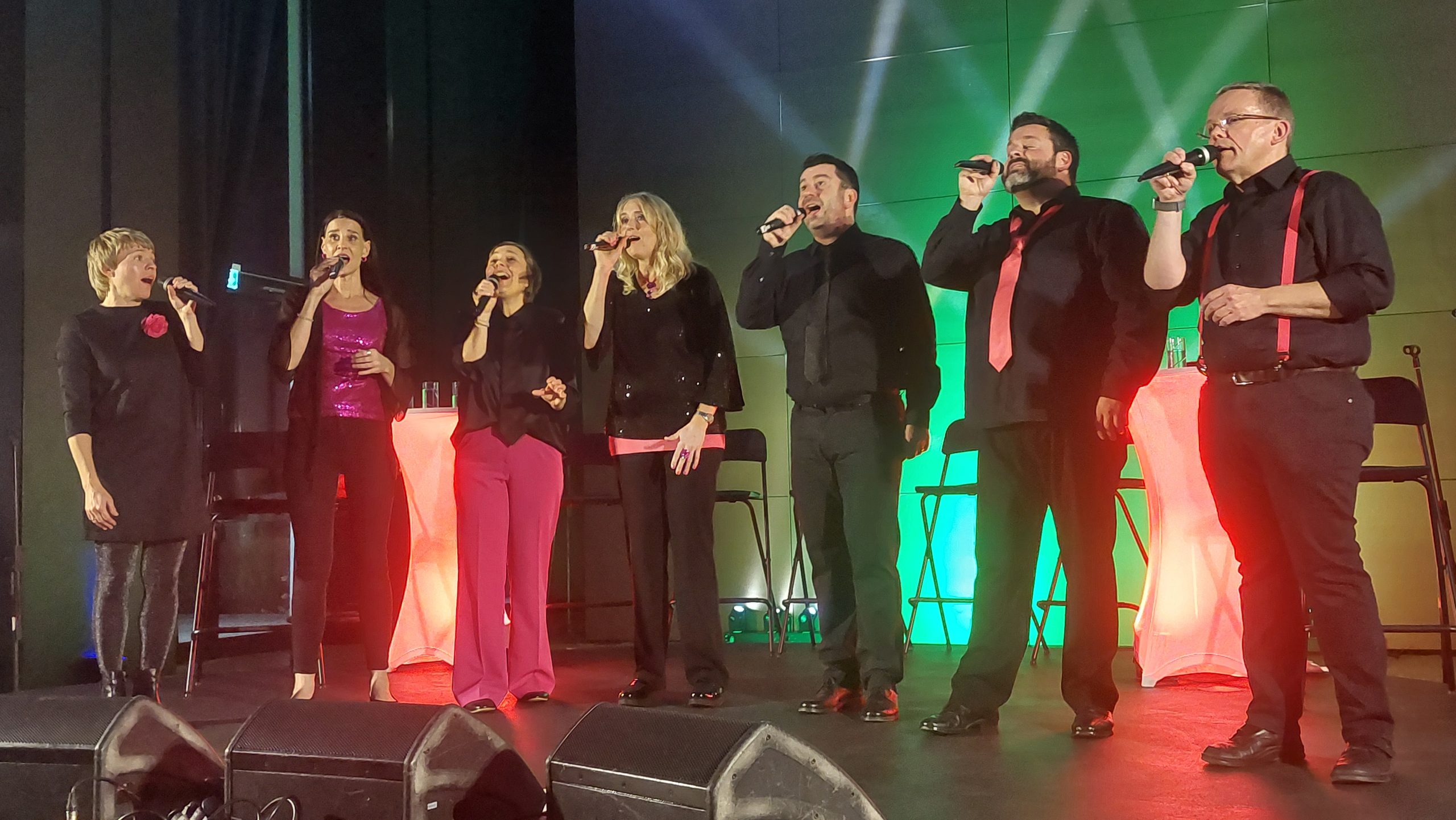 Ob die Zuschauer nun auf humorige Weise lernten, das „in jeder Frau ein Stück Hefe“ stecktund sich beim Bauch-Beine-Po amüsierten, beim Polizei-Medley mit viel Spaß vom Großstadtrevier zu den Rosenheim-Cops musikalisch von Fernseh-Tatort zu Fernseh-Tatort reisten, im spannungsgeladenen James-Bond-Medley die Filme des fiktiven britischen Geheimagenten Revue passieren ließen oder es im Saal bei gefühlvollen Stücken wie „Chasing Cars“ auch mal ruhiger wurde: Das Publikum genoss die kreativen, harmonischen Arrangements in vollen Zügen und zeigte sich entsprechend begeistert.